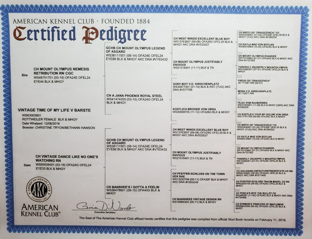 Brooke CH Vintage A River Runs Through V Dyson CH Vintage Dance Like No One’s Watching RN x Ch. Mount Olympus Nemesis Retribution, CGC