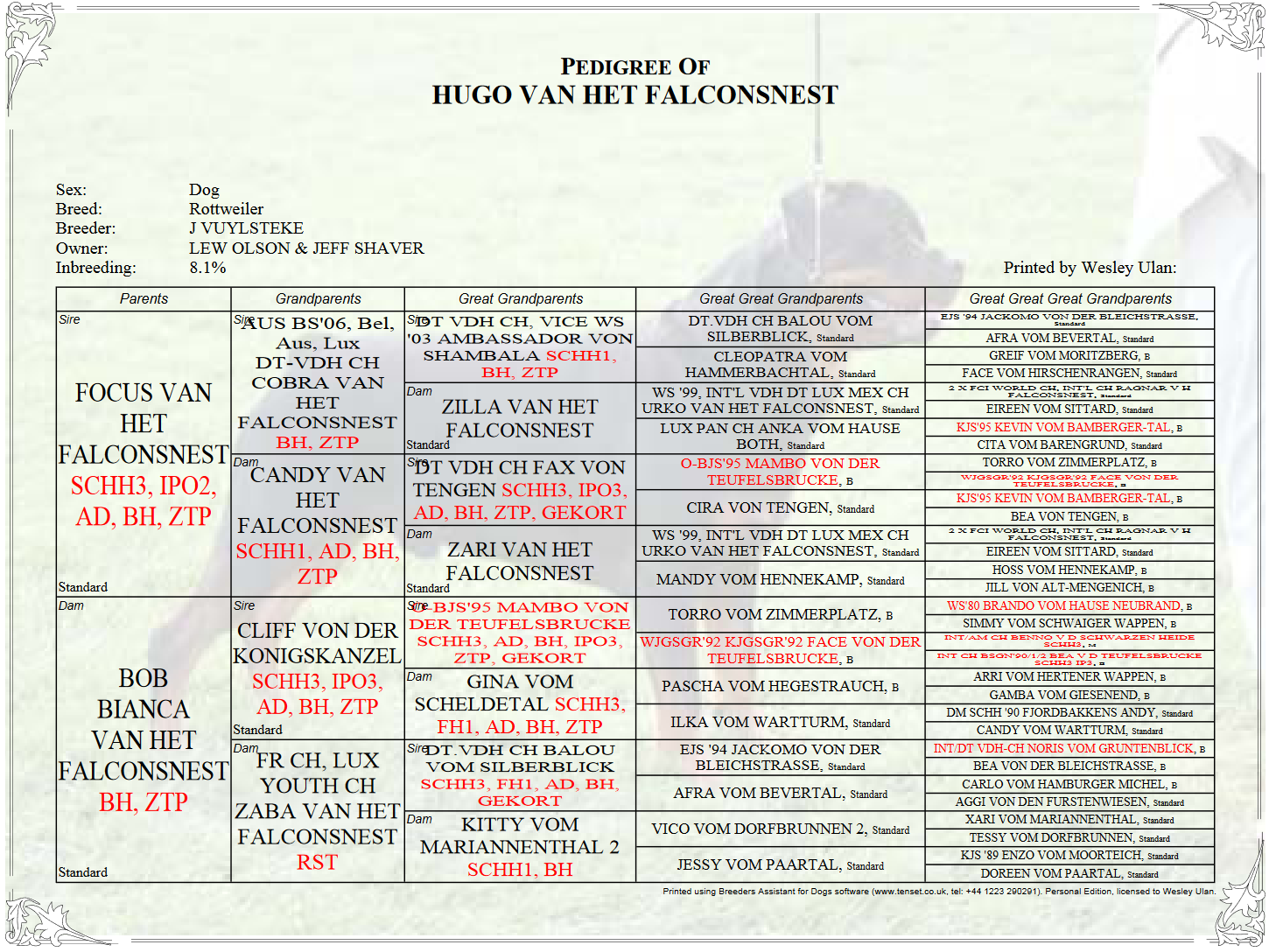 CH Hugo Van Het Falconsnest